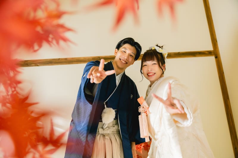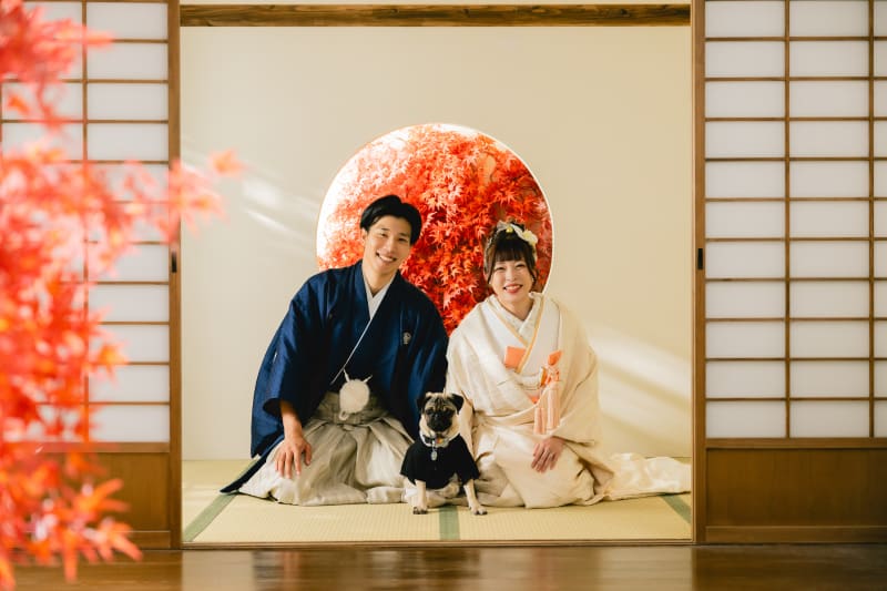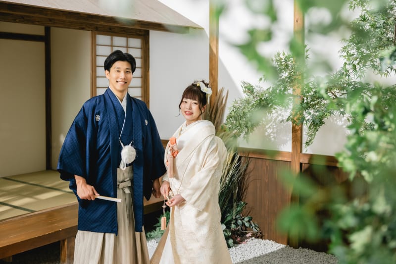 屋内庭園スタジオでは結婚式の招待状などにも使いやすい正座のお写真を残すこともできます!