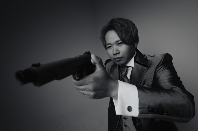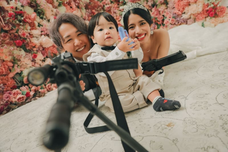 サバゲーが趣味のお二人でモデルガンを持ってこられたのでカッコよく撮りました!