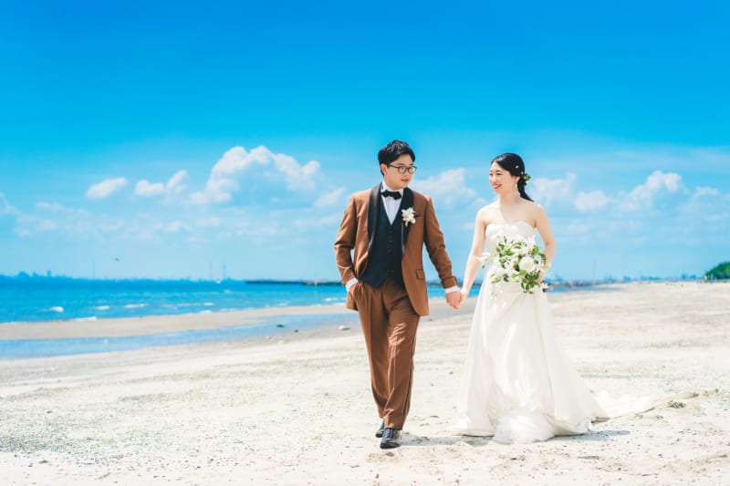 浜辺を歩いてもらいました!いつも通りの2人の様子が素敵です^^
