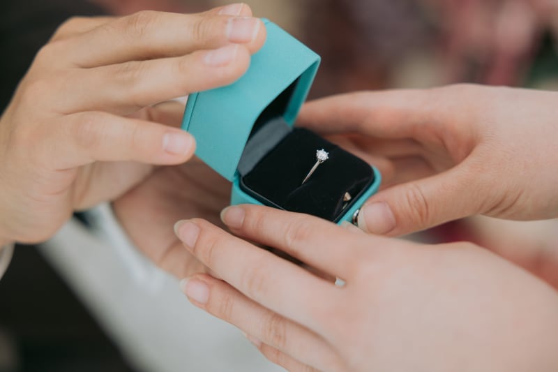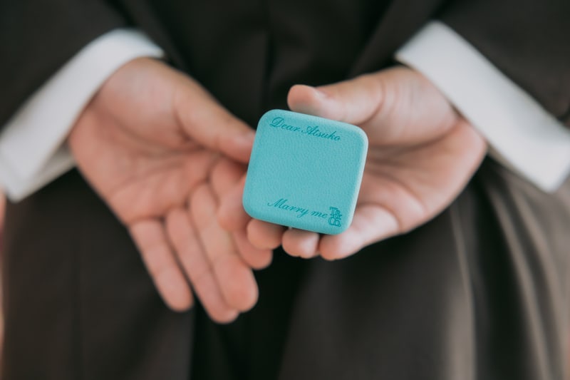 新郎さんの手にはティファニーブルーの指輪のケースが…!