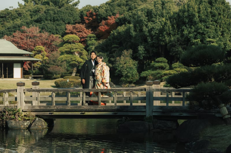 見浜園の定番スポットの太鼓橋もしっかり撮影します!