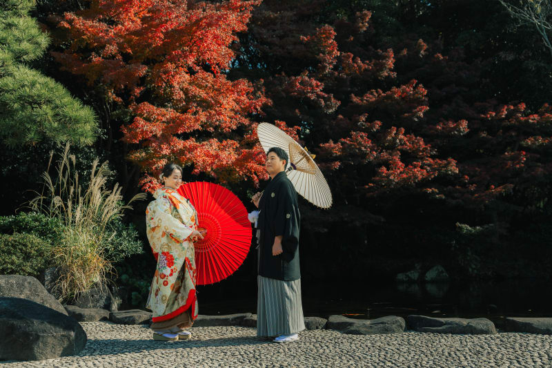 カメラマンの鋤柄です!本日は見浜園の紅葉撮影のご紹介です!紅葉が真っ赤に染まってくれます!