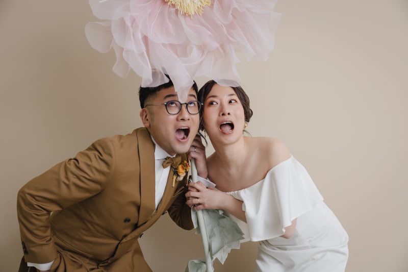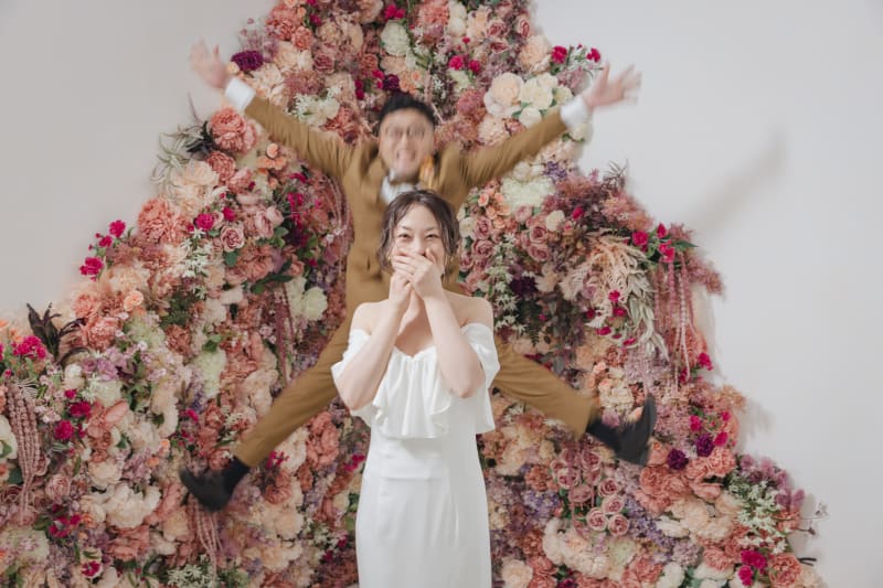 ジャイアントフラワーを使ってふざけてもらいました笑。皆さんも是非ふざけて撮影しましょう!