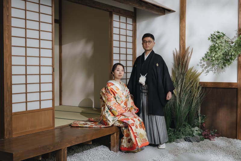 次は新郎様。縁側に座っていただき、ニヤニヤ。指輪を眺めてもらってます笑。
