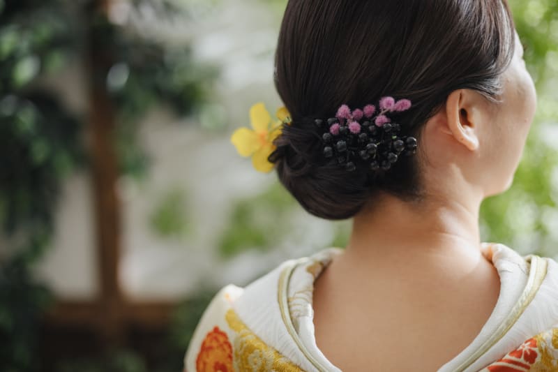 当店オリジナルの髪飾りをフィーチャー。新婦様とじっくり相談して仕上げていきます!