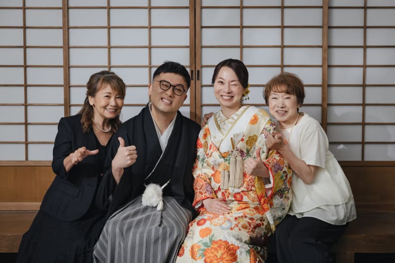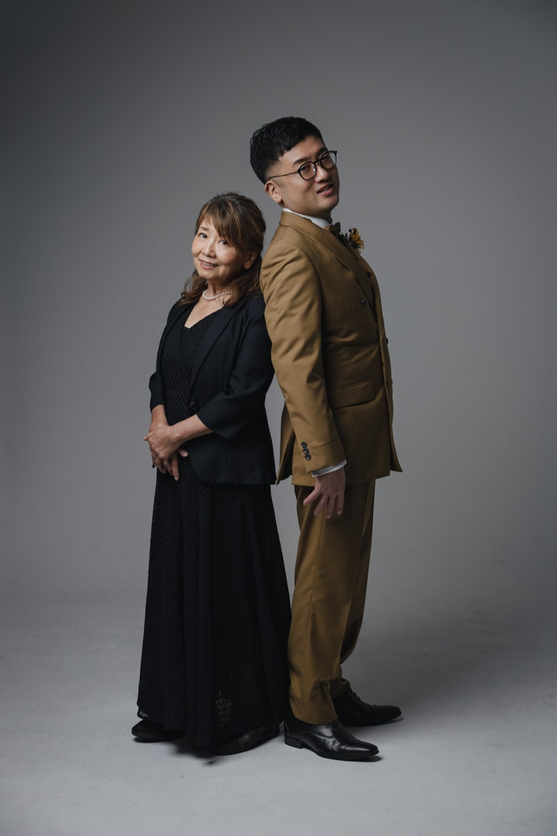 新郎様もお母さんとツーショット。背中合わせで少しカッコよくしてみました!