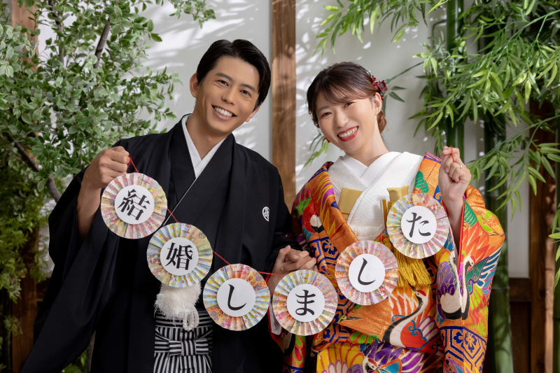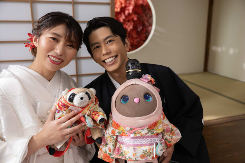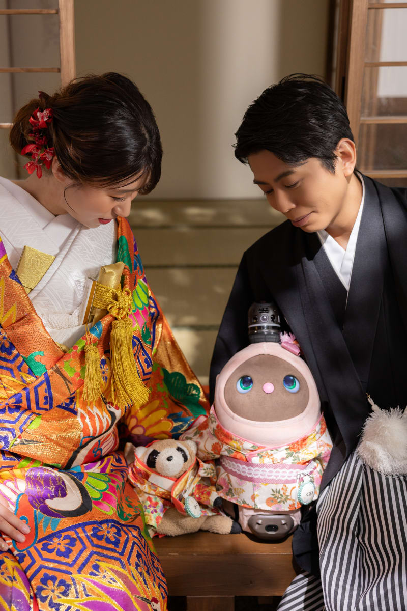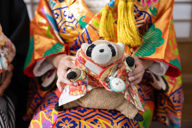 ご新郎様の膝に座っているのは、らぼっとのくるみちゃんです!