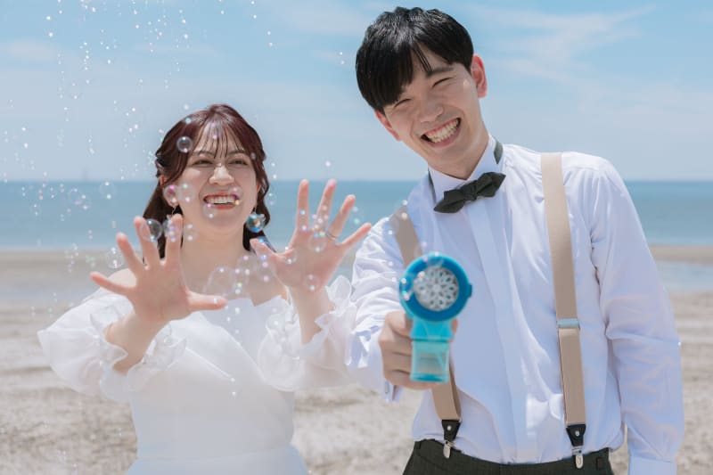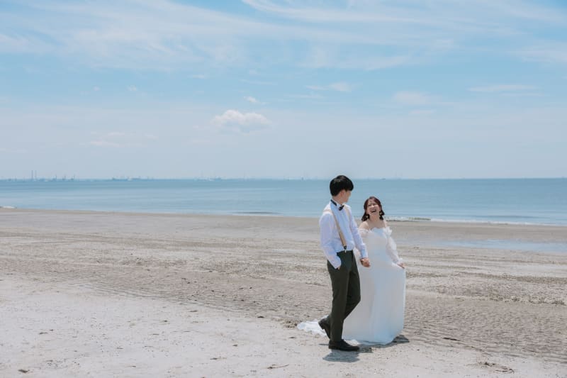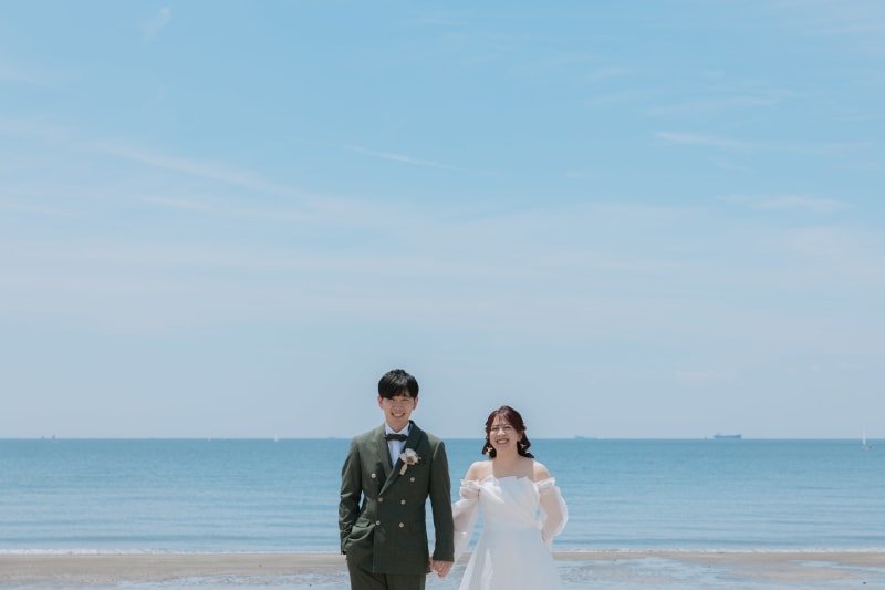 今回は稲毛海浜公園の海で撮影したおふたりのお写真のご紹介です!