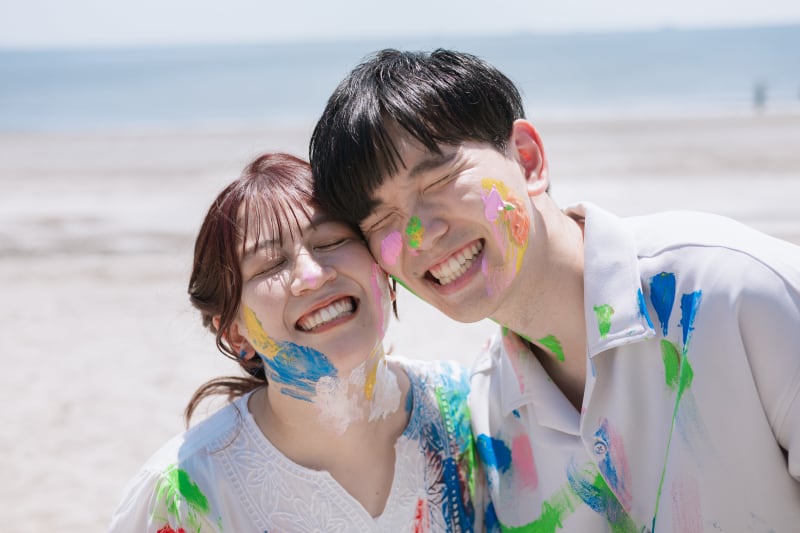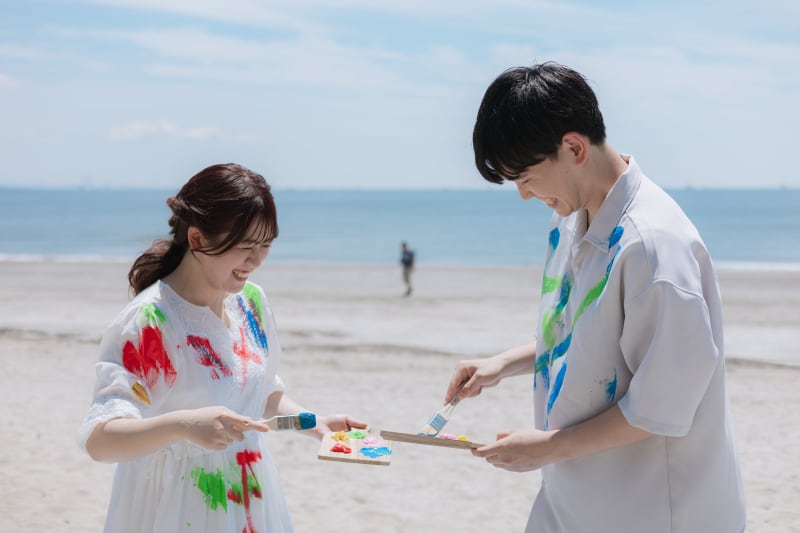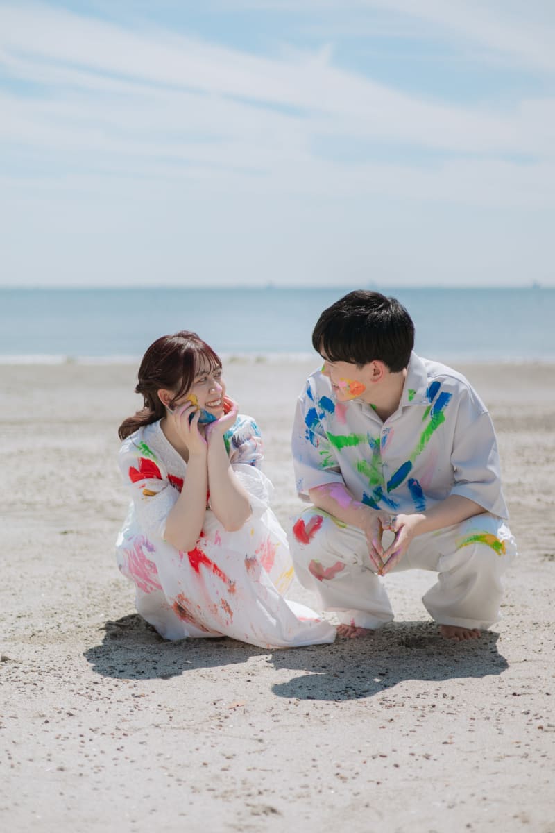 なんとおふたりがご希望いただいていたペインティングフォト〜! まずは好きなようにそれぞれ色をつけてもらいました!