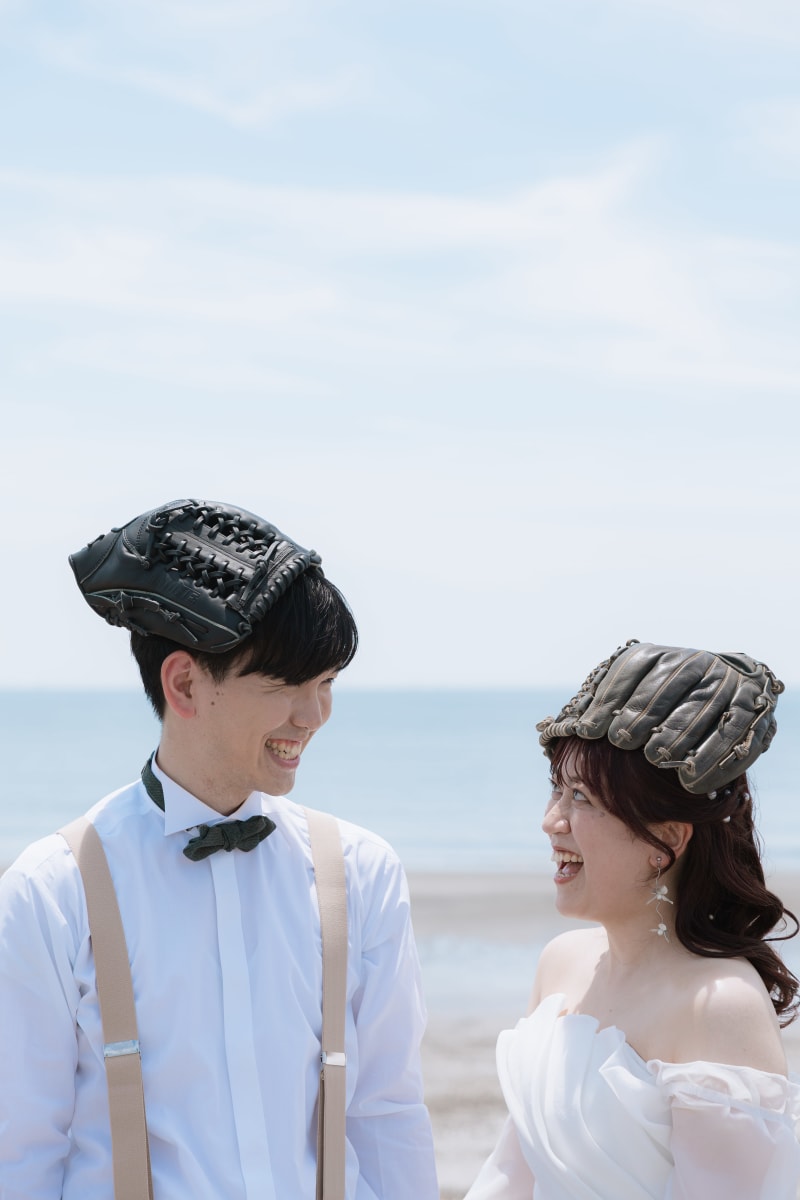 ご新郎様は野球、ご新婦様はソフトをしていたとのことでグローブをお持ち込みいただきました^^ この後ふたりでキャッチボールも^^
