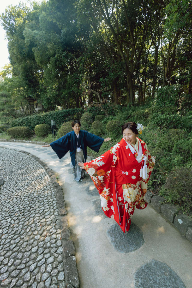 今回は見浜園とハウススタジオにて、和装の2着撮影をされたお客様のお写真をご紹介します!