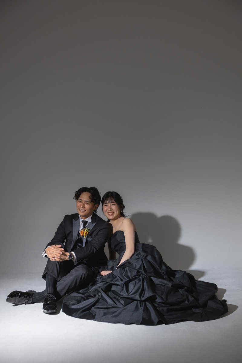 お二人のコーディネートはグレーの背景とも相性バッチリです◎