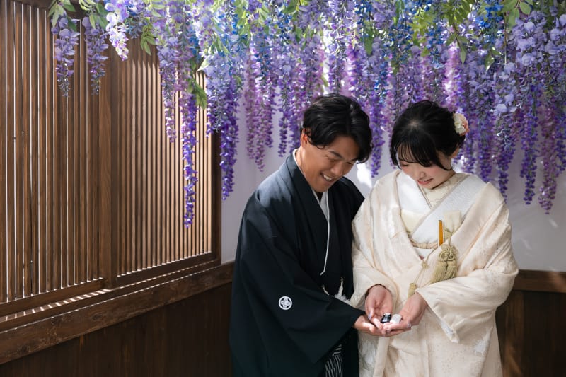 和装はかっちりしたお写真が素敵ですが、このくらいラフなお写真もお二人らしくてとってもいいですね!