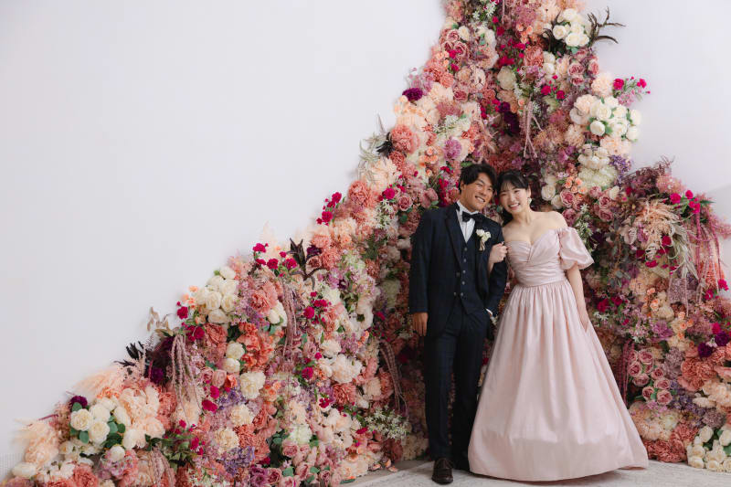 お花の壁で寄り添ってもらって!可愛すぎます!