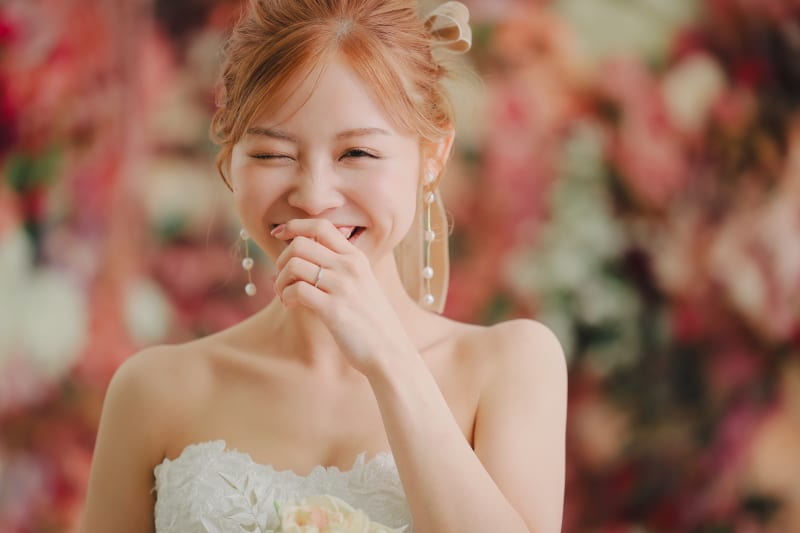 ふふっと笑うご新婦様。ウィンクがとっても可愛らしい一枚です♪