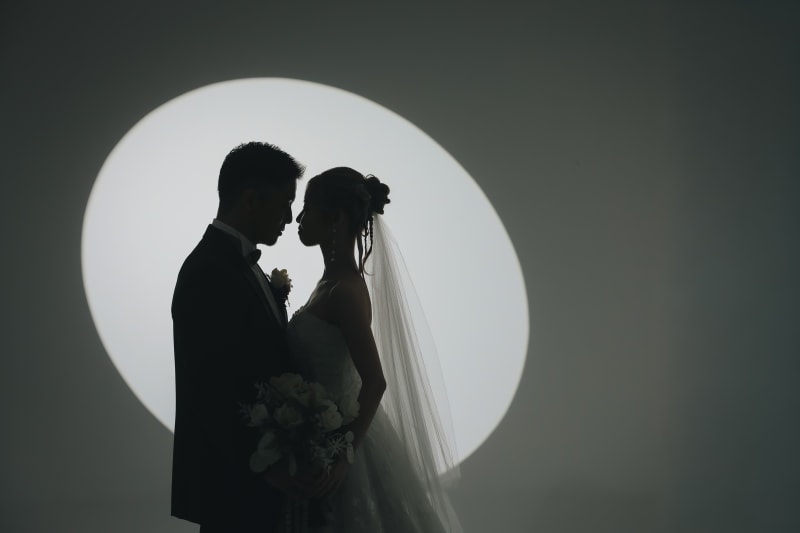 お二人の綺麗なシルエットに加え、透けるベールが美しいです♩