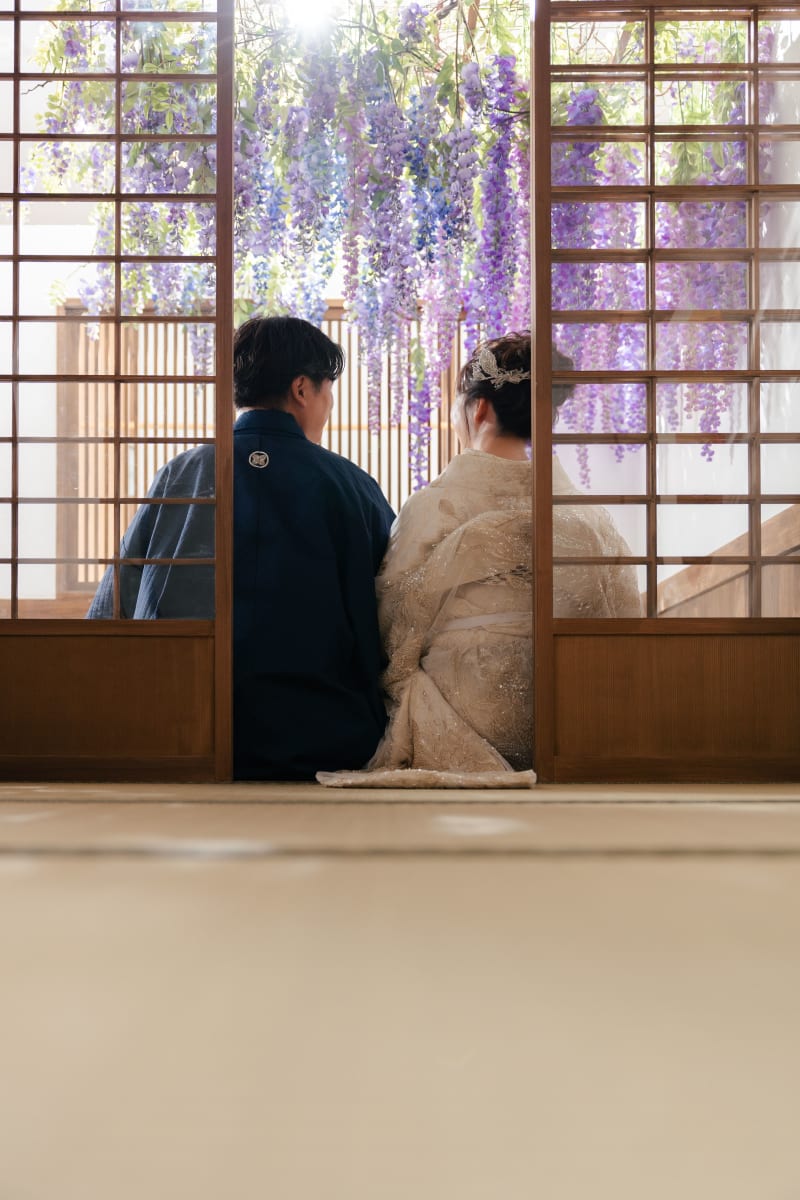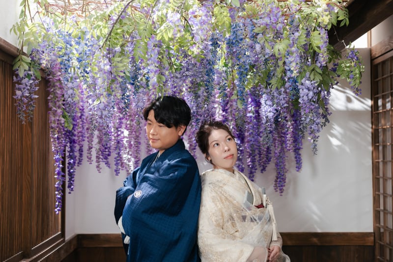 まずは屋内庭園から!藤の花と一緒に撮影希望だったお二人!