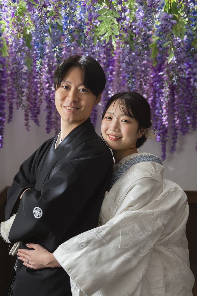 藤の花でぎゅっとご新婦様からのバックハグ!