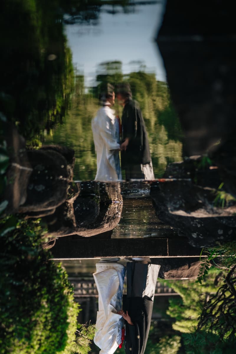 水面に反射している2人を切り取った1枚。 想像力が掻き立てられるアーティスティックな仕上がりに♡