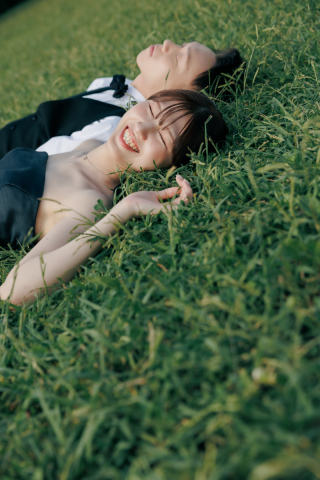 芝生に大胆に寝転んで!ご新婦様の弾ける笑顔も可愛い😍