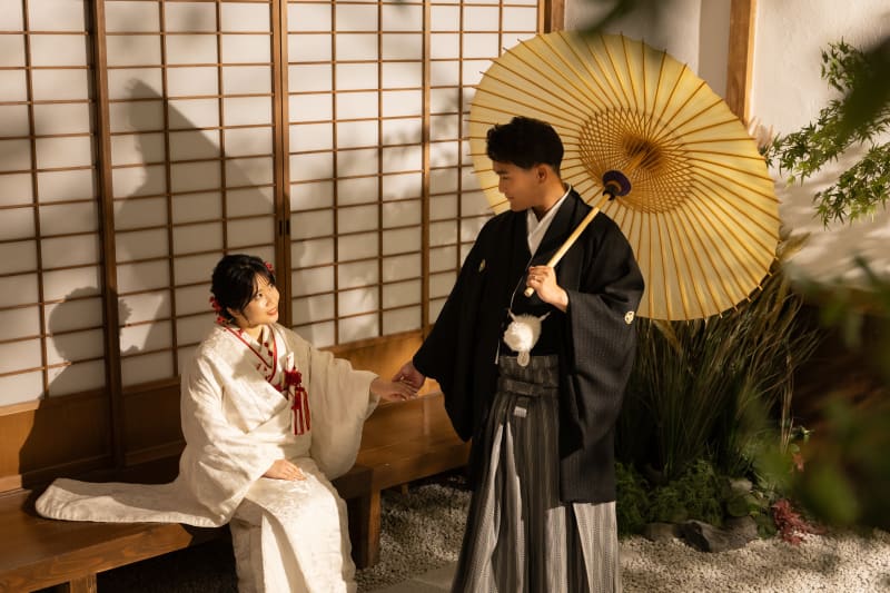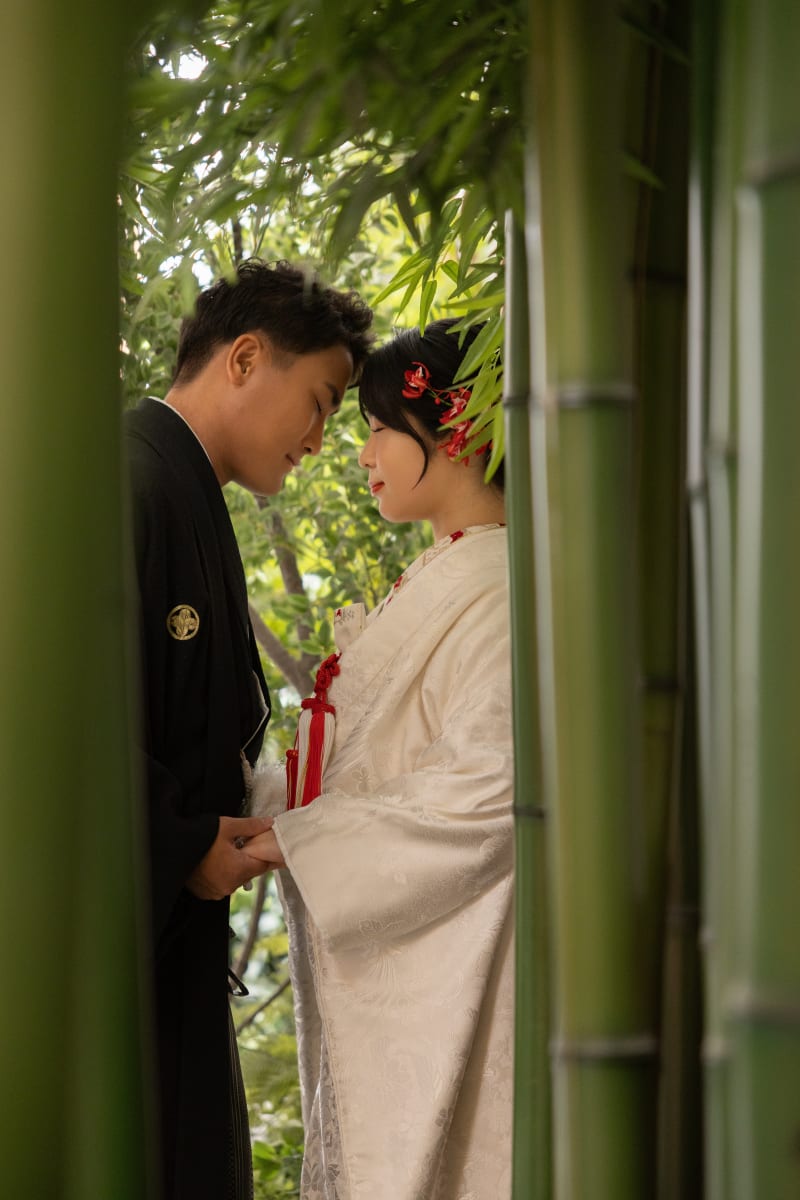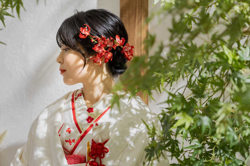 横顔と、白無垢におちた木陰がとても美しいです◎