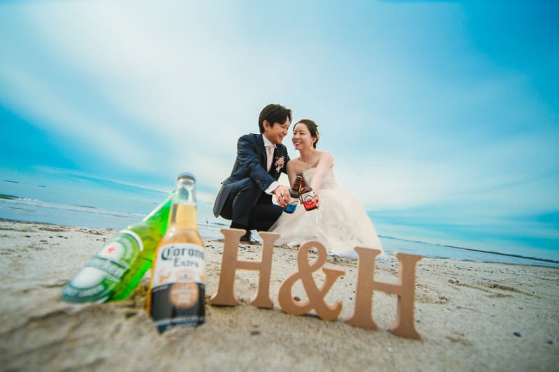 2人ならではなアイテムから定番のアイテムまで自由にお持ち込みください^^ 今回はイニシャルブロックと大好きなお酒を持参してくださりました!