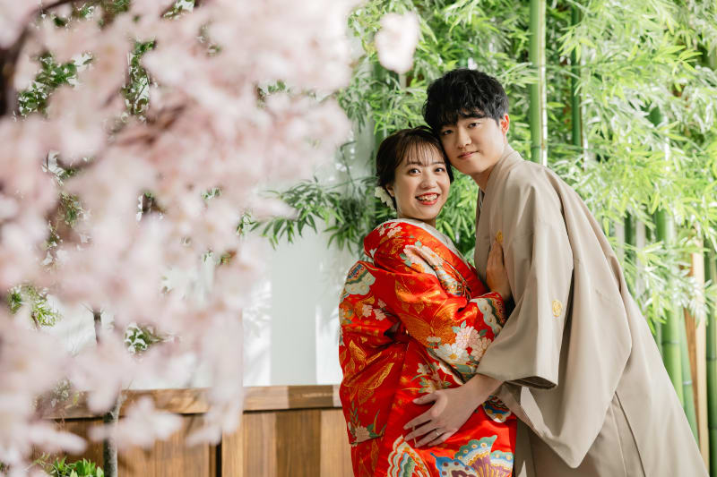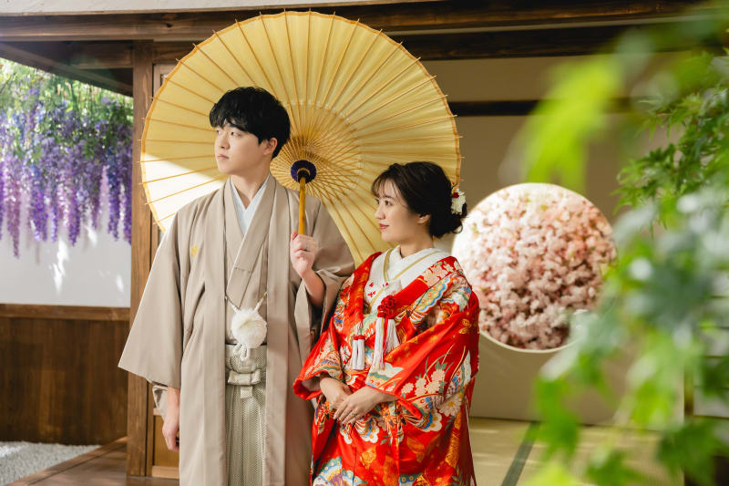 スタジオは季節感と天気を自由に変更できるので、お二人の希望の雰囲気で残すことができます!