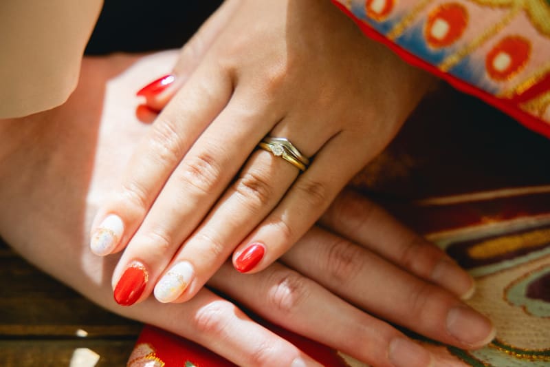 赤い打掛を着たいからネイルも合わせてきたんです!とおっしゃっていたご新婦様。