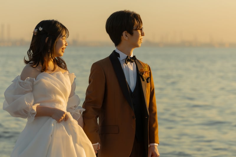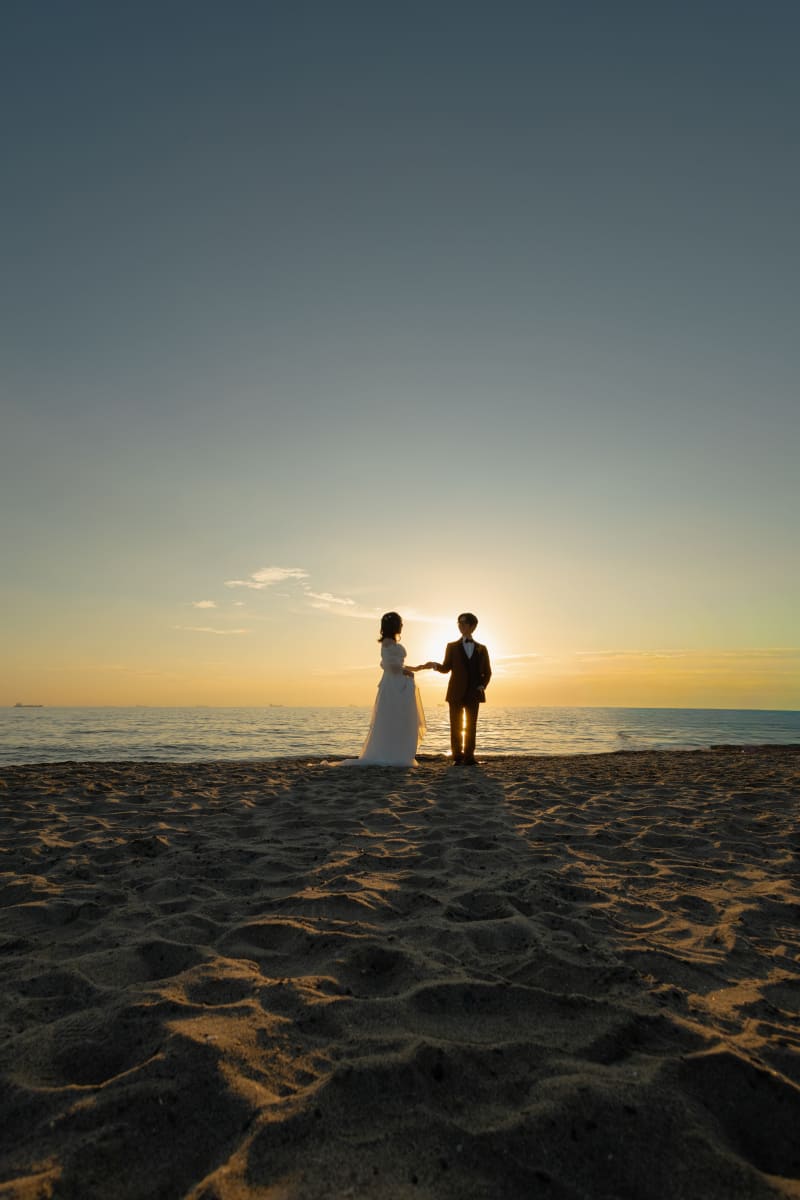 夕日が照らす先にはお二人がいるのがとっても素敵ですね!