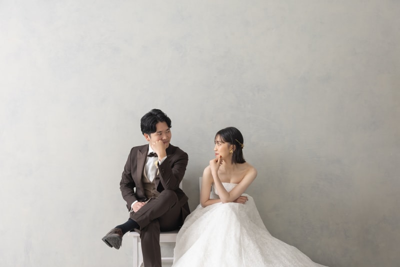 次はグレー背景で椅子を使った少しクールめのお写真。