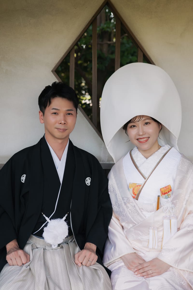 東屋に入って座りのショットも! 綿帽子もあってより雰囲気もグッと良くなります!