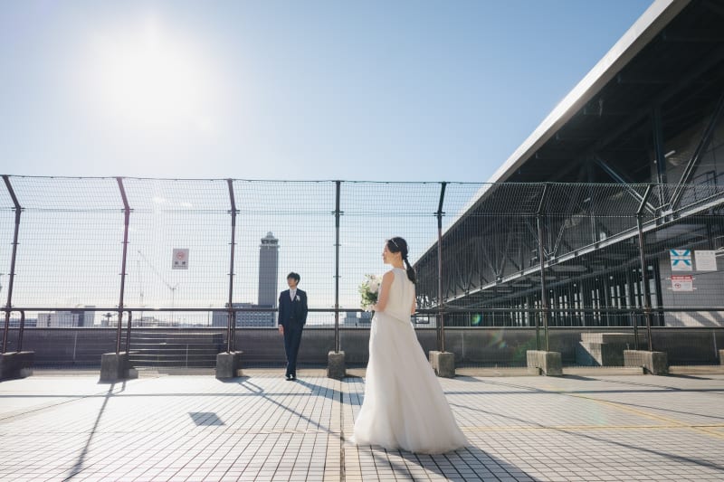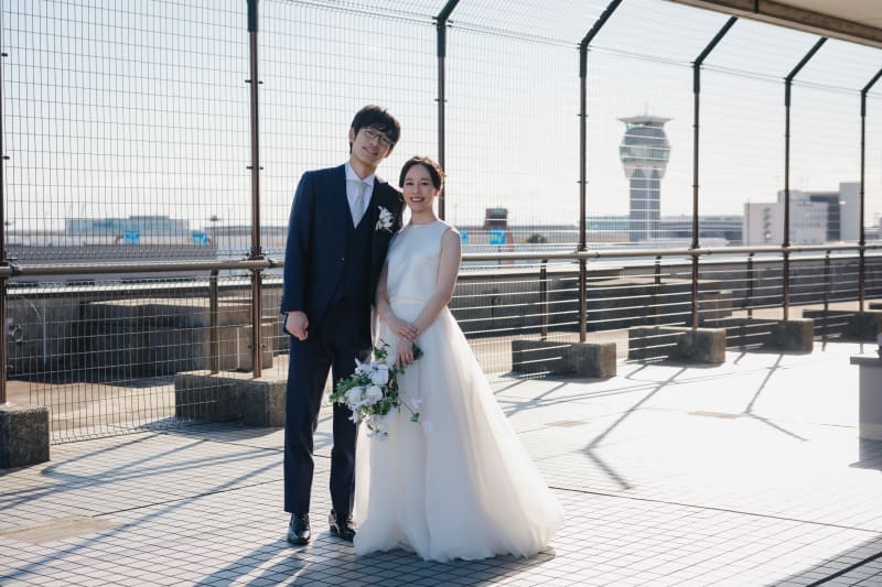 展望スペースでは管制塔をしっかり入れて撮影!新郎様のリクエストでした!