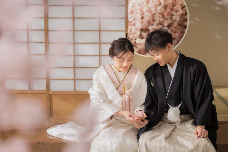 背景もお衣装も桜色で、手にも桜色!全体の統一感ハナマルです◎
