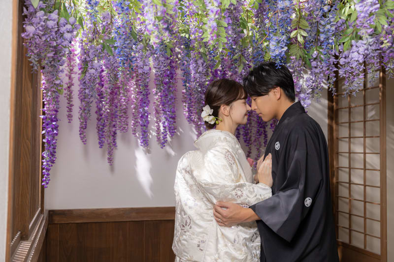 藤の花が咲き誇る空間で、自然と近づくふたりの距離。