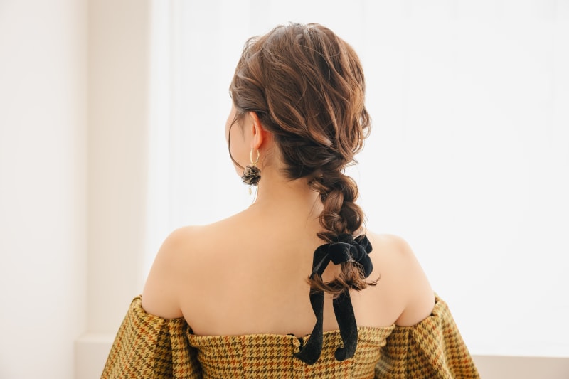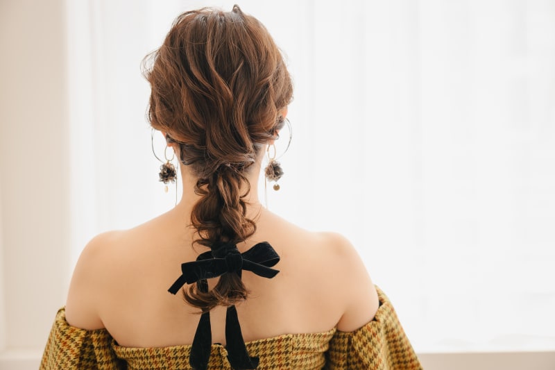 結び目を隠したふわふわスタイルの編み下ろしに