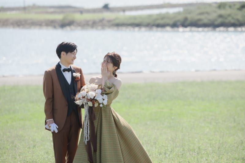 秋の撮影にぴったりの秋カラーで撮影されたお2人。