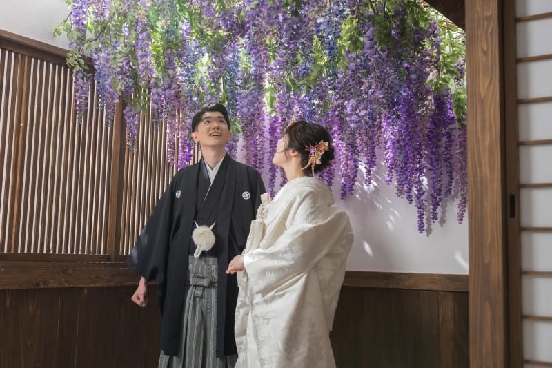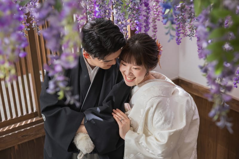 一面藤の花でぎゅっと寄り添いあっているおふたり!!