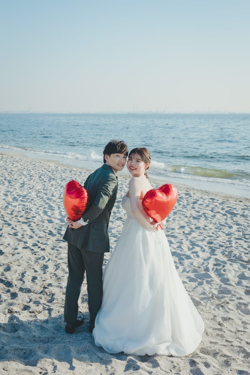 お持ち込みいただいたハートのバルーンを使って。使い方もご提案いたします!