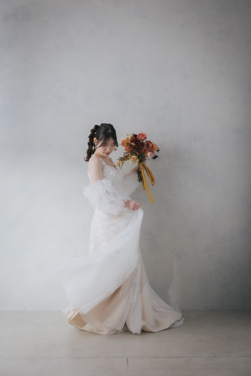 ドレスを振っていただき動きのある写真にしてみました!