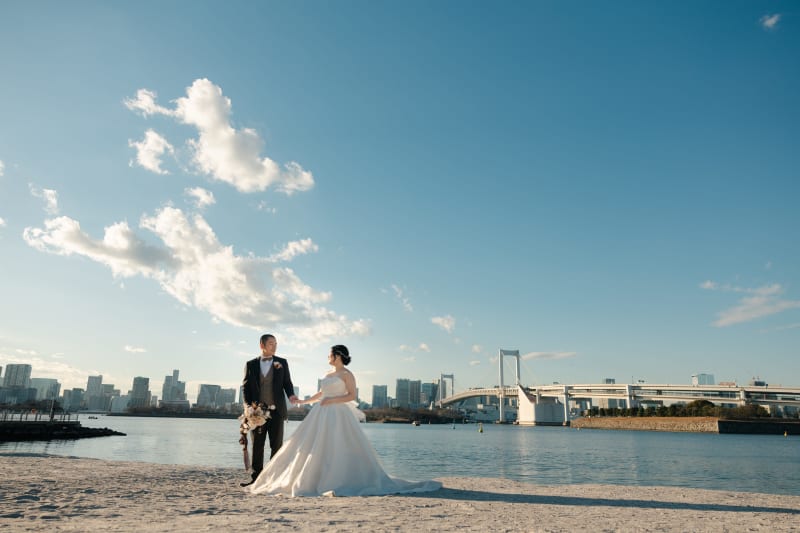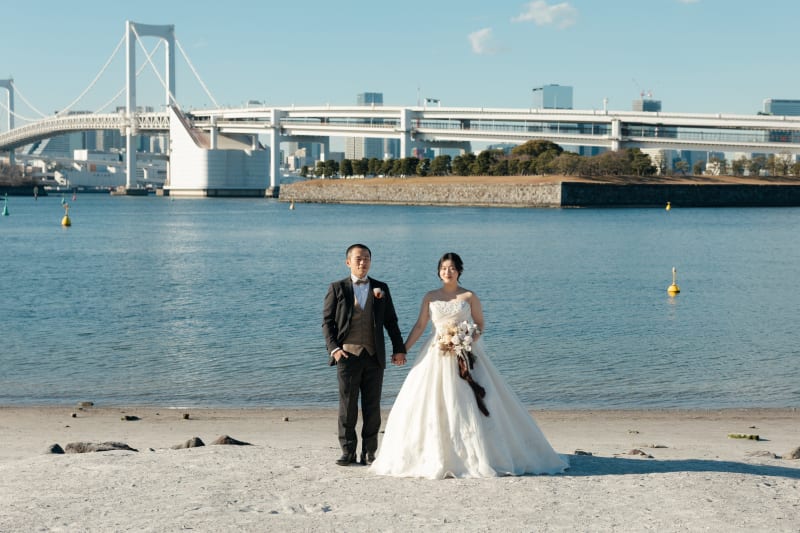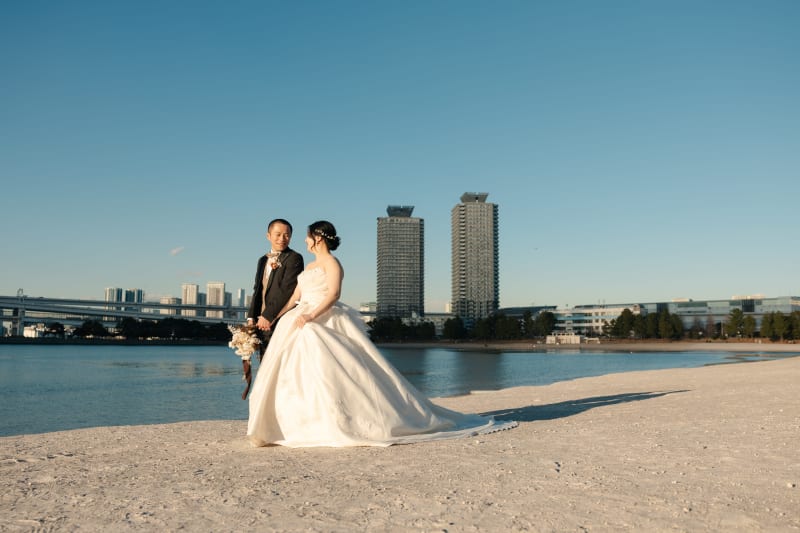 今回はお台場海浜公園で撮影されたおふたりのお写真のご紹介です!