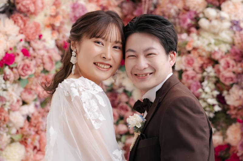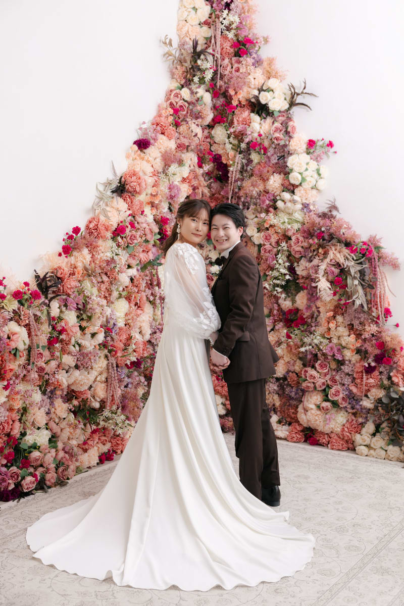 お花の背景での撮影をよくご希望いただきます! 色鮮やかなピンクの色味がいい感じです!