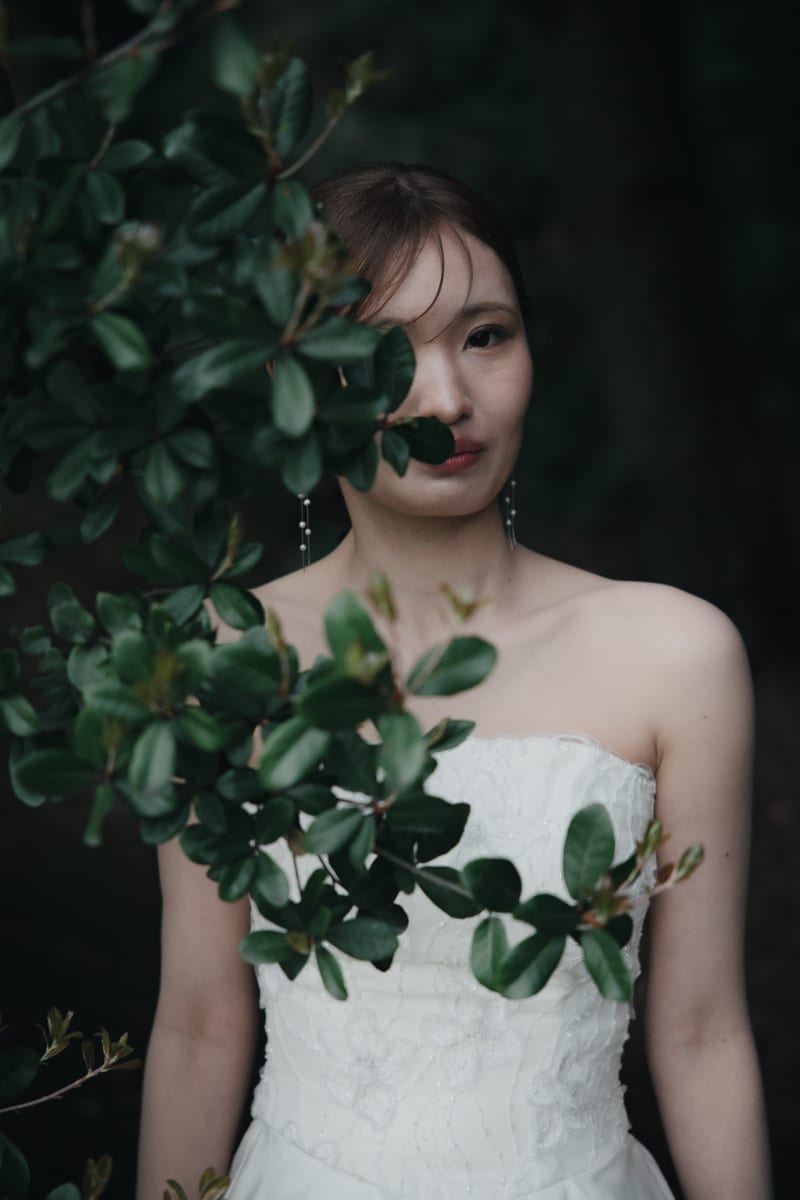 ウェディングドレスは落ち着いた雰囲気で撮影したいというお二人のご要望通り、陰影を使った大人っぽい雰囲気にしました!