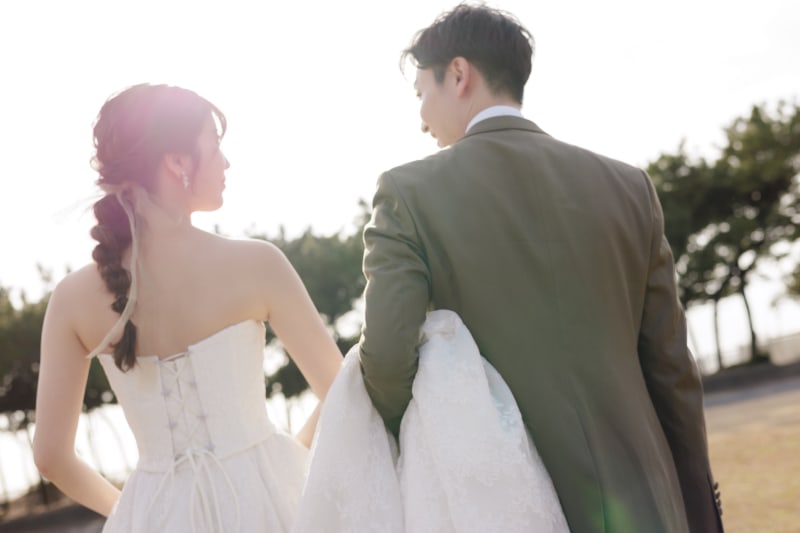 移動中のお二人もとても絵になる背景と光。ロケーションならではのドキュメンタリーのような撮影が可能です♩