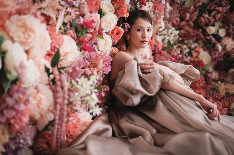 可愛い印象があるお花の背景でも、ライトや表情を変えるとしっとりした雰囲気にも変身します!