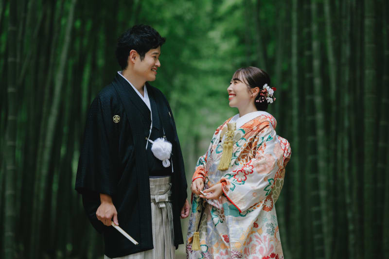 和装撮影では、竹林を背景にしたお写真を多くのお客様にお選びいただいています。