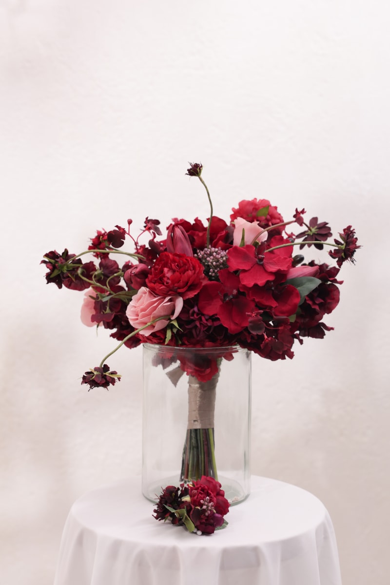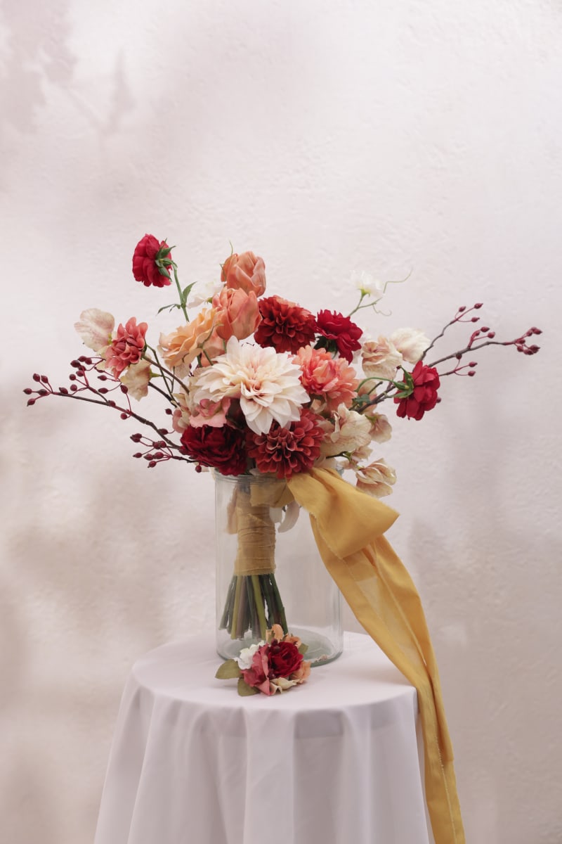 暖かさと希望に満ちた赤のブーケでお二人の撮影に彩りを添えてください!