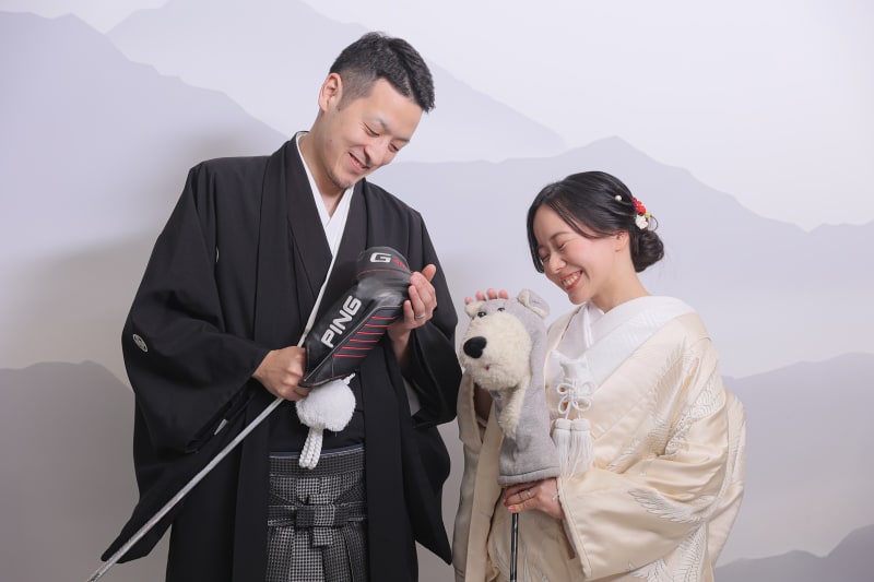 ついつい緊張してしまいがちな撮影ですが、いつもお二人が使っている物や思い出の品があるだけで、グッと表情やポーズの幅も広がります。