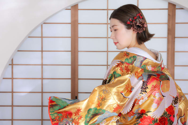 ヘア飾りも着物に合わせてブラウン、赤の実などで合わせました!飾りも新婦様と相談しながらつけていきます