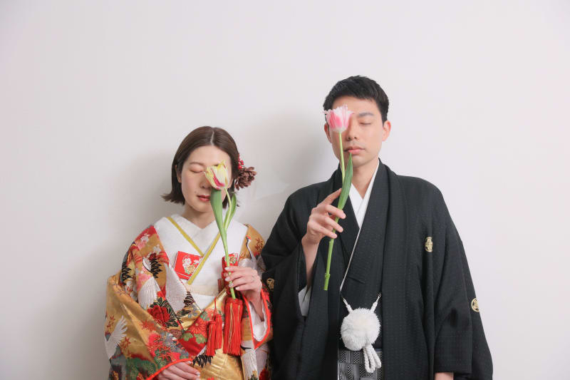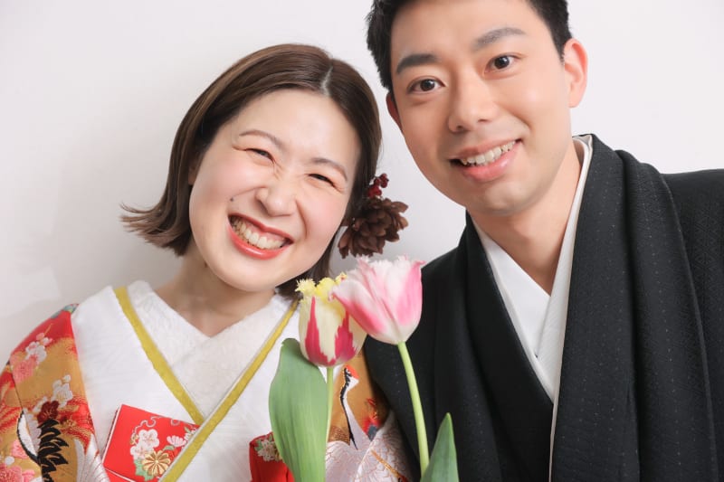 今回はお持ち込みいただいたチューリップのお花とお二人の衣装の紹介です