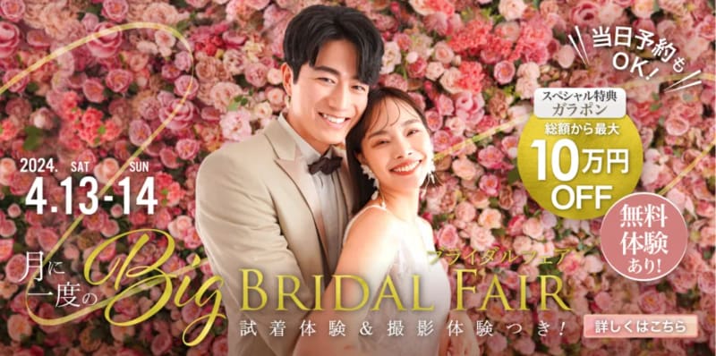 4月13日(土)、14日(日)浅草店で月に一度のビッグブライダルフェアを開催します!